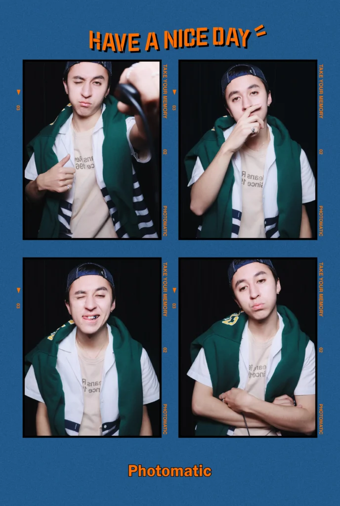 Photomaticのセルフフォトを楽しんでいただいたあと、ご希望の方にはコンパクトデジタルカメラ(コンデジ)のレンタルを無料で実施。店内のフォトスポットで自由に撮影いただき、最後に選んだデータをPhotomaticらしい4カットのオリジナルフレームに入れて、写真紙と画像データをプレゼントいたします。