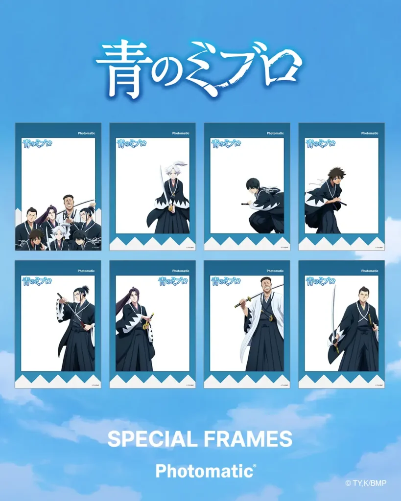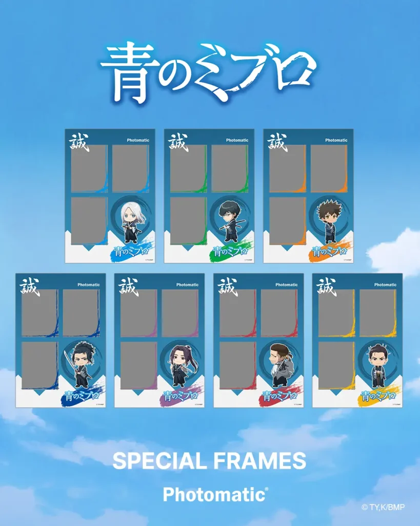 セルフフォトブランドPhotomaticは、TVアニメ『青のミブロ』とのコラボレーションを2026年2月2日(月)より期間限定で実施します。今回のコラボレーションは、現在放送中のアニメ第二期『青のミブロ—芹沢暗殺編—』が盛り上がりを見せるタイミングで、全国各地のファンが作品の世界観をより身近に体験できる機会としてフォトブースをご利用いただけます。コラボレーションフレームは全18種。ぜひ期間中にお好きなフレームで撮影をお楽しみください。