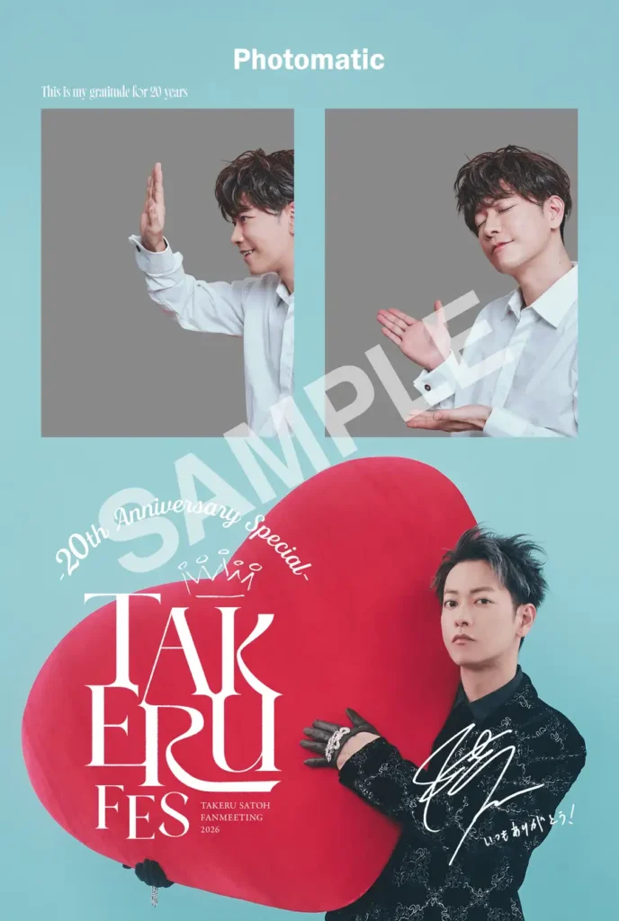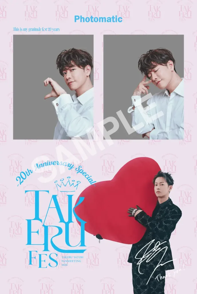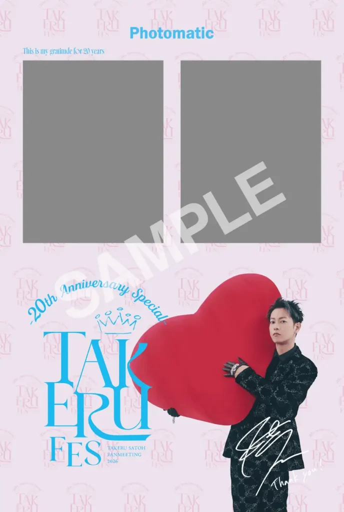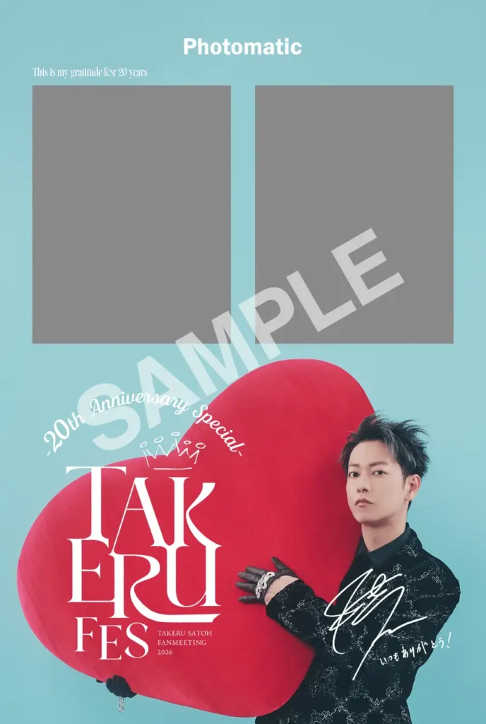 セルフフォトブランド Photomaticは、俳優・佐藤健氏のデビュー20周年を祝したファンミーティング「TAKERU SATOH FANMEETING 2026 TAKERU FES -20th Anniversary Special-」の開催を記念し、2026年3月3日(火)より期間限定でスペシャルコラボフレームを発売いたします。